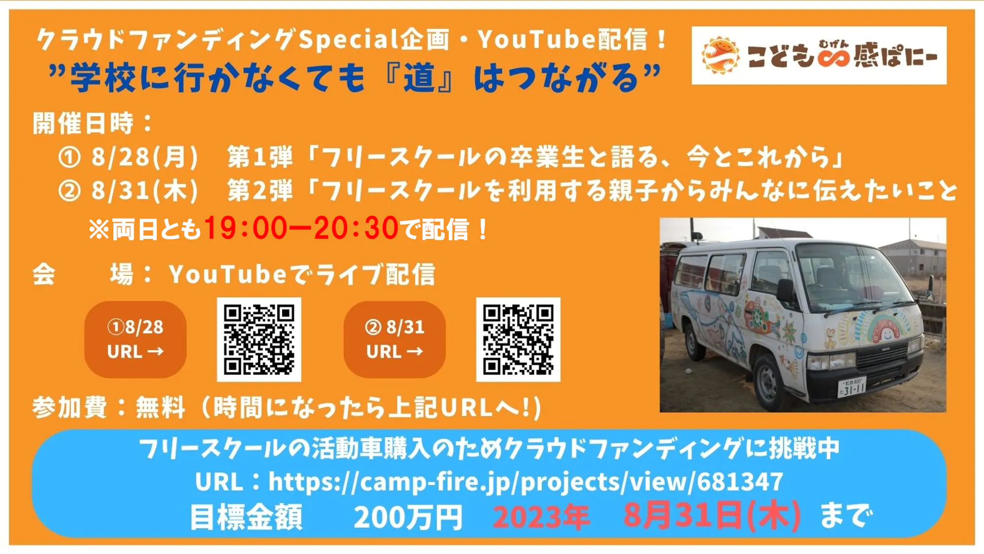 第2弾を行う8月31日(木)はクラウドファンディング最終日となります。目標金額までのカウントダウンもしますので、達成に向けての応援と達成の瞬間を共に喜べると嬉しいです!
