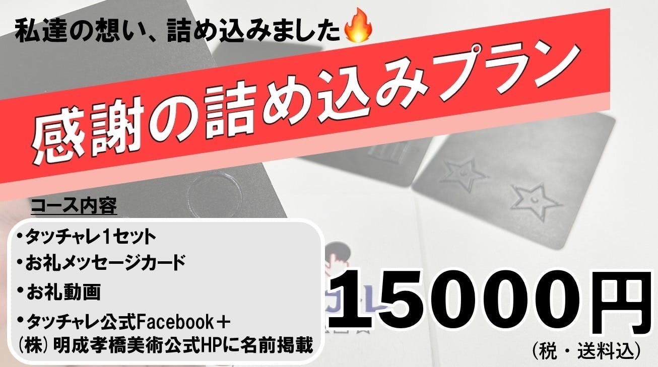 タッチャレ1セットに加え、お礼動画やメッセージカードなど!私達の支援者の方への感謝の気持ちが存分に伝えられるプランとなっております。
