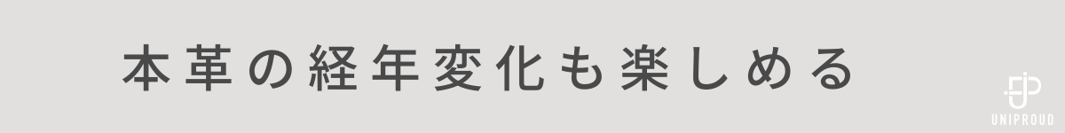 経年変化する革なので、自分のライフスタイルに応じてエイジングの過程を楽しめます。日の当たり方や、使い方、触る頻度などによって経年変化も様々なので、1つとして同じものにはなりません。自分で育てるバッグとしてもお楽しみいただけます。