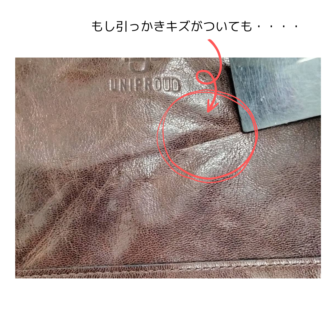 もしもひっかき傷が付いた場合は、揉みこむことで、内のオイルがまた移動してキズがなじんでいく。魅力的な濃淡が、きれいな状態で長く使えます♪