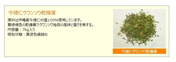 このクワンソウは沖縄県今帰仁(なきじん)村で栽培も盛んであり、この有機栽培されたクワンソウを手摘みで収穫・乾燥葉まで一貫加工を行う生産者様からクワンソウ乾燥葉を提供いただき、クワンソウ100%のハーブティーを作ることにしました。