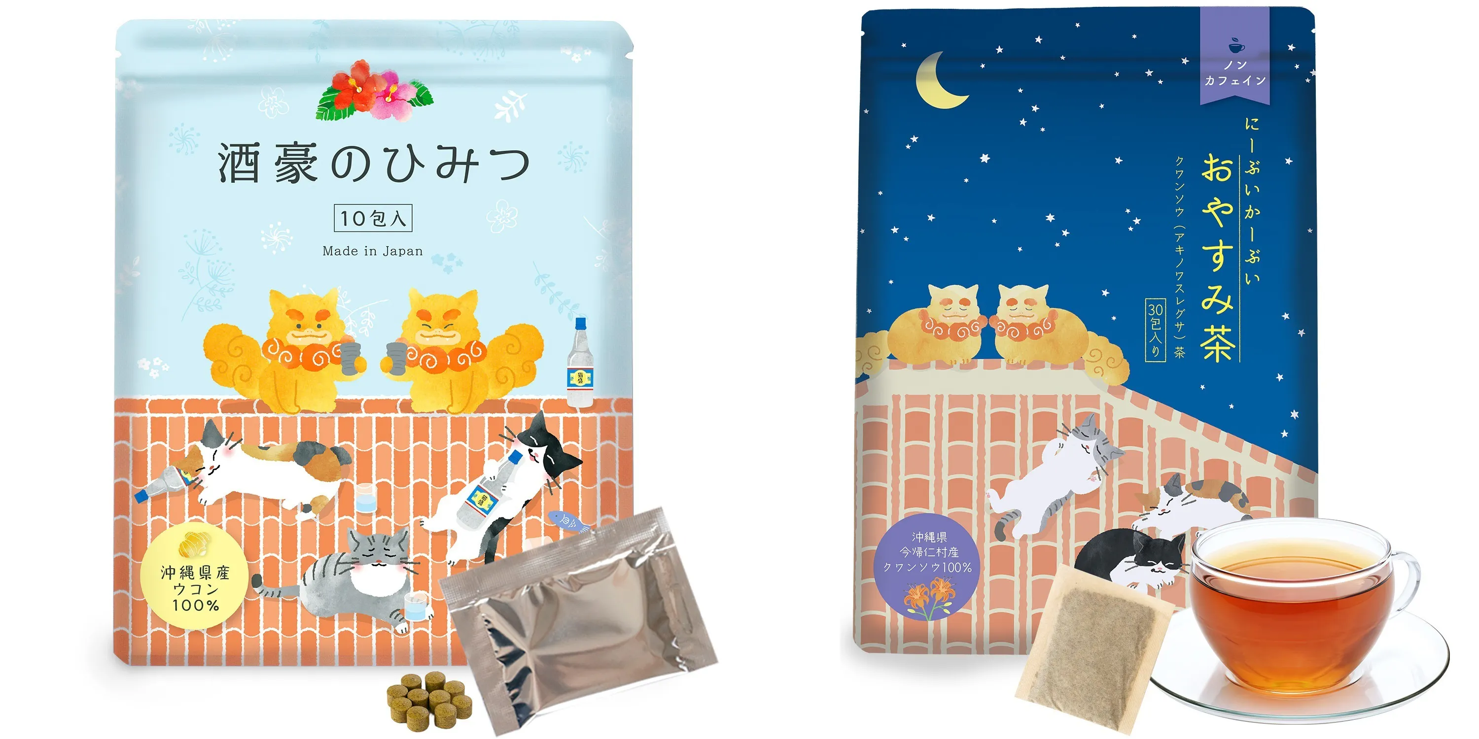 クワンソウ100%のハーブティーも近いデザインを採用し、沖縄の言葉から「にーぶいかーぶい」を採用、わかりやすく「にーぶいかーぶい おやすみ茶」としパッケージデザインも完了しました。