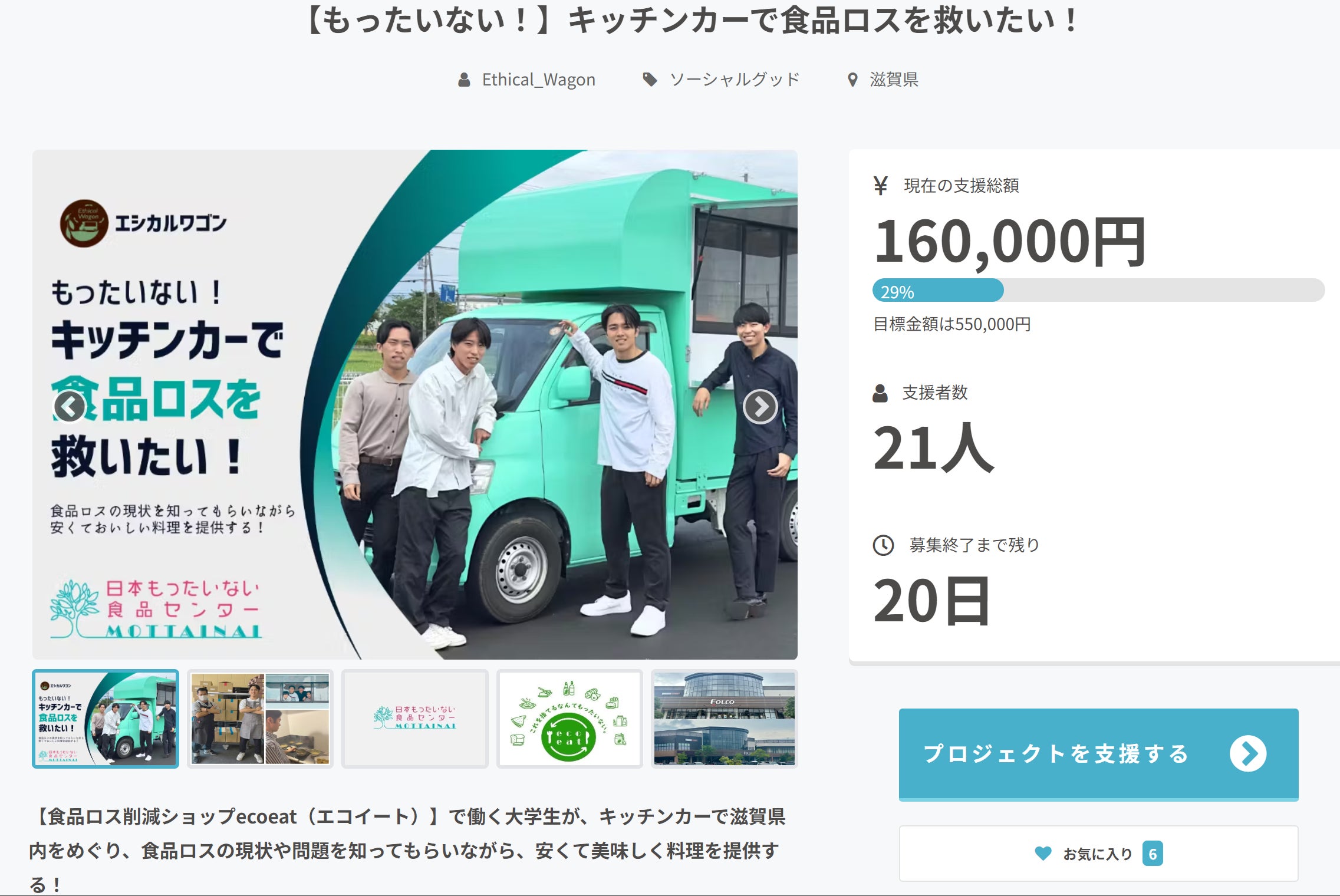 皆さんこんばんは!エシカルワゴンの坂本大輝です!この度は僕たちエシカルワゴンのクラウドファンディングにご協力、ご支援いただき誠にありがとうございます。皆様の熱いご支援のおかけで、開始1週間で目標金額の29%に当たるファンディングを頂くことができました!皆様のご支援や、拡散といったご協力なくては達成できませんでした!本当にありがとうございます!次の1週間で目指すは・総支援者数:40人・総支援額:300,000円です!この目標も皆様のご協力とともに達成したいと考えており、そのためにもSNSでの拡散をはじめとした共有をお願いいたします!エシカルワゴンのインスタグラムhttps://www.instagram.com/ethical_wagon/?igshid=OGQ5ZDc2ODk2ZA%3D%3D ↑上記のURLからエシカルワゴンのインスタグラムにアクセスできます!↑こちらでも活動報告やニュースを配信しています。フォローと拡散のほどよろしくお願いいたします!最後になりますが、これからも皆様のご期待に全力で応えられるように頑張っていきますので、ご支援、ご協力のほどよろしくお願いいたします!2023/07/11坂本大輝