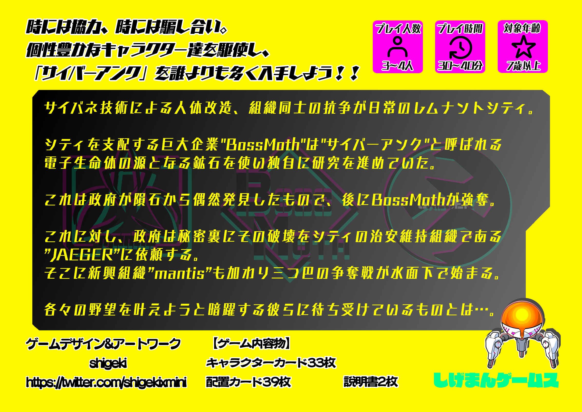 しげまんゲームスにとって2作目のカードゲームになりまして、このゲームを印刷会社に依頼する資金を集めさせていただきたいです。