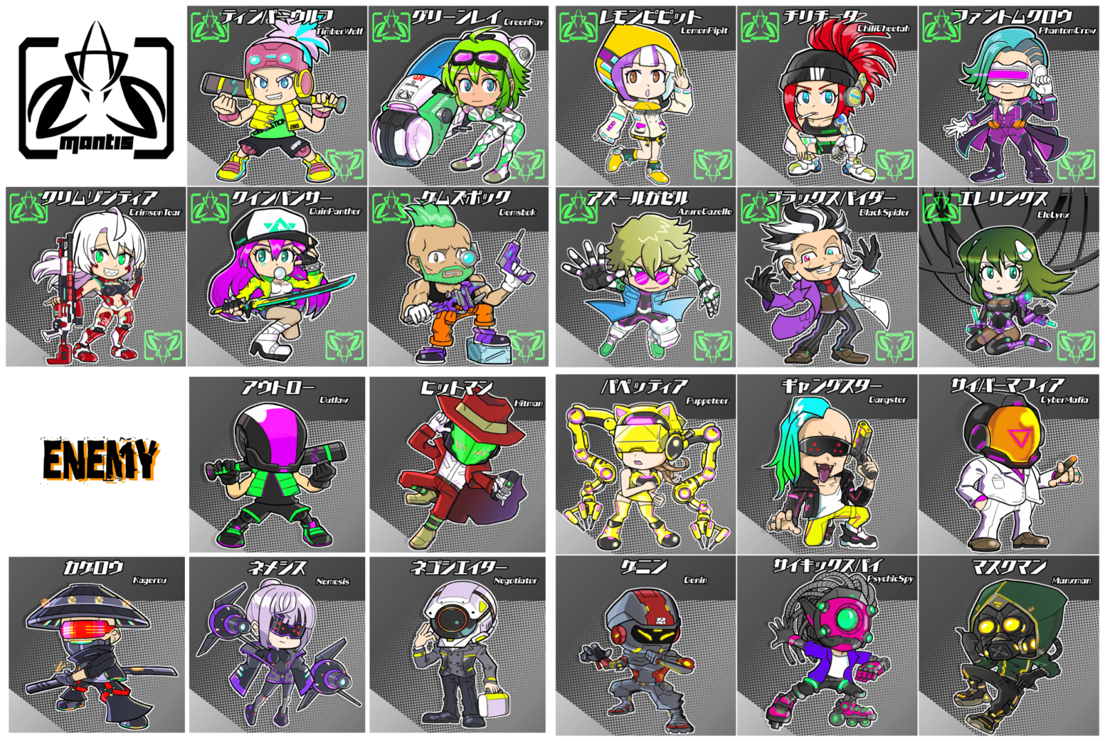 新興勢力マンティスのエージェントキャラの紹介