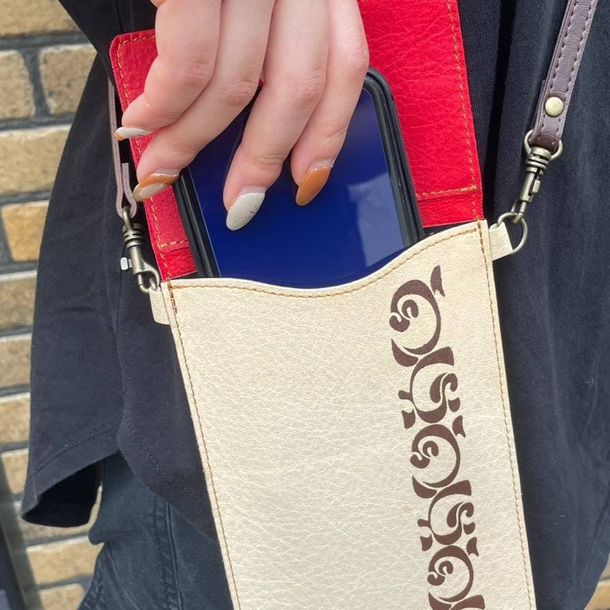 シルクスクリーン印刷でスマホポーチに漆で文様をプリント