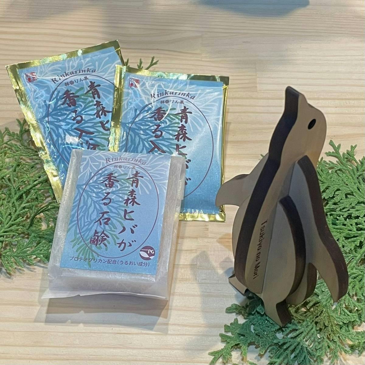 青森ホリックのヒバ製品 ヒバのバストーイ「ひば丸」と石鹸、入浴剤