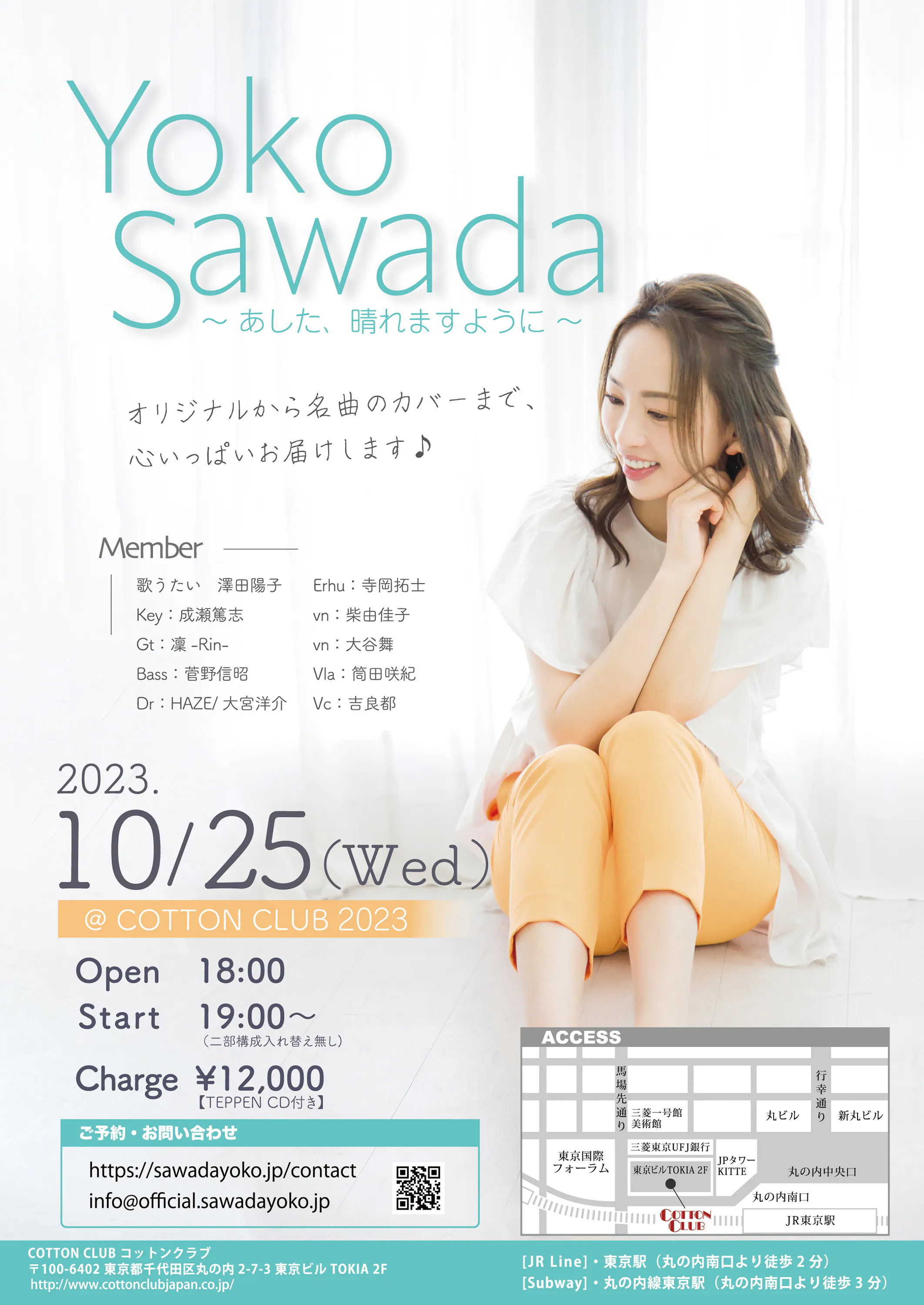 2023年10月25日に、4年ぶりの丸の内コットンクラブにて澤田陽子ワンマンライブを開催することにいたしました!