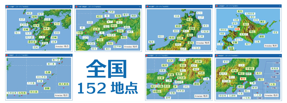 ※3地点ツールの表示地点は、Amedas観測地点を除く主要官署59地点での表示組合せとなります。