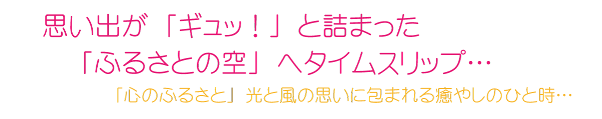 あくまでも、私的な思いに過ぎませんが、人は生まれ育ったふるさとの中で、思いっきり食べ、遊び、学び、そして旅立ちます。心の中に残るのは、そんなふるさとの味・風・匂い・そして思い出ではないでしょうか。そして、ありきたりの言い方かも知れませんが、瞼の裏に焼き付いたものは、"思い出"、そして"空の青さ"だったのでは無いでしょうか。あくまでも、単なる個人的な経験の記憶に過ぎませんが…。