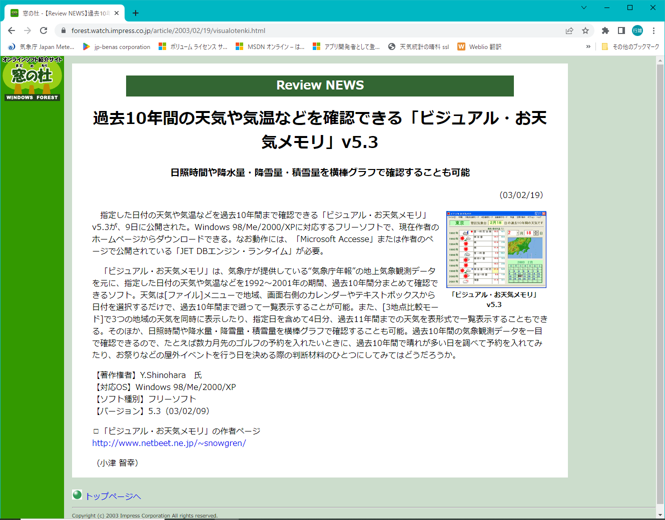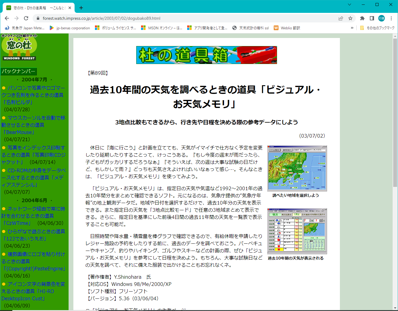 過去に「ビジュアルお天気メモリ」をフリーソフトとして提供。