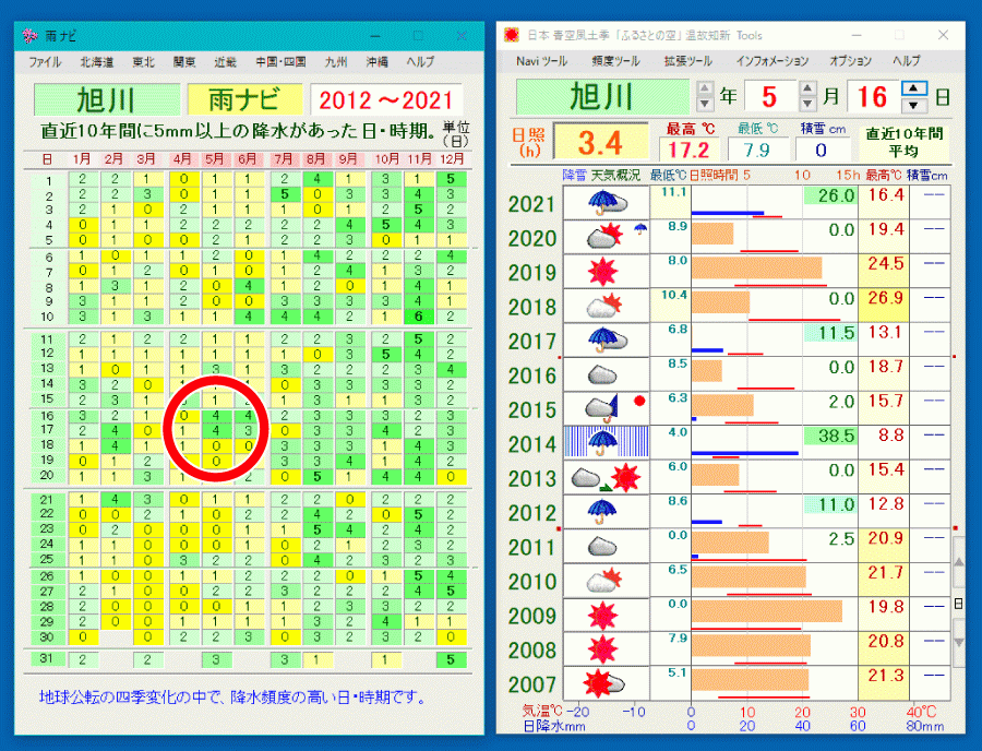 これらが励みとなり、毎年新しいデータを追加してフリーソフトとしてずっと提供してきました。この過去天気統計のソフトウェアで、人と人、人と地域をつなぎ、地域を活性化し、この統計天気のソフトウェアが私たちの身近にあって当たり前のトンカチやノコギリの道具と同じように身近な道具にしたいと思い、自分が目指してきた「一村一品」の社会貢献とはこれかも知れないと気づき、自分のライフワークとなったのもこの頃でした。