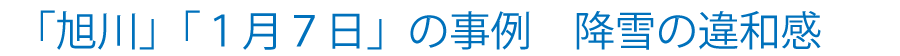 重要ノウハウの2点目です。積雪地帯の場合も、降雪量に応じ「雪だるまの大きさ」を変えることにしました。「10 cm」未満と、以上とで「雪だるま」の大きさを変えています。これも、積雪地帯での生活感覚に即した配慮の1つです。下の画像、実際の「旭川」・同じ日「1月7日」、「配慮無し」と「配慮あり」の表示の比較で見ていきます。降雪量は、概況枠左の水色数字cmです。