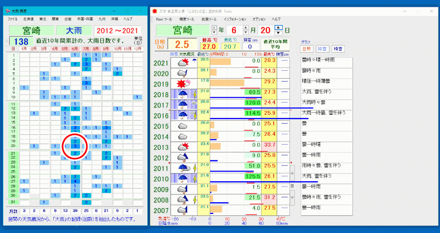このようなナビ機能の追加はまだまだ必要でした。それは大雨や暴風雨・雷の出現頻度の知見です。