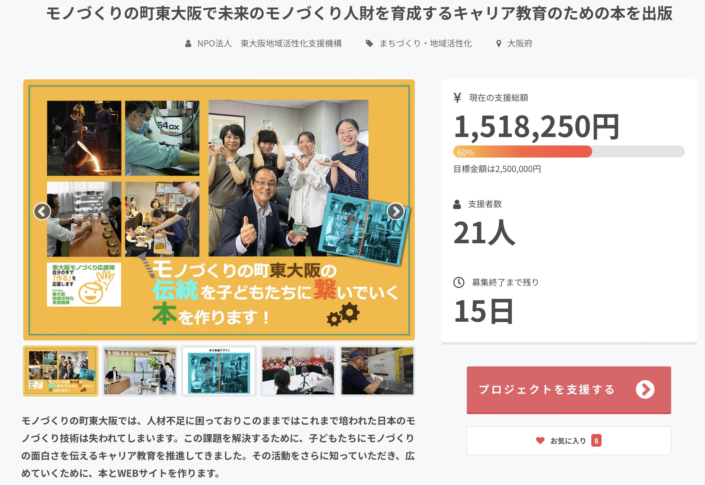 9/1からスタートしました、モノづくり人材を育成を育成するキャリア教育のための本出版クラウドファンディングチャレンジですが、早くも残すところあと15日となりました。