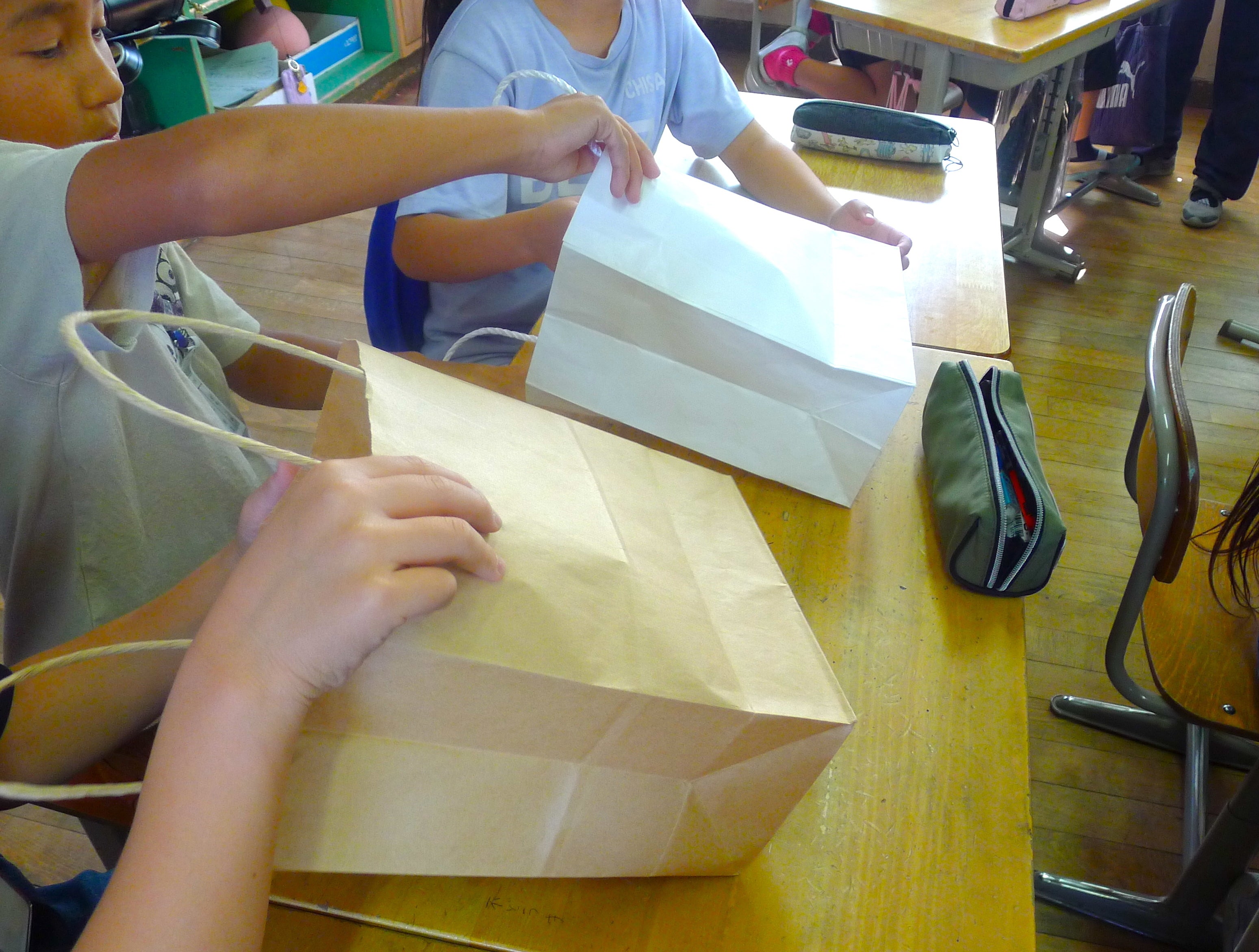 ザ・パック株式会社から講師をお招きして、紙袋製作体験教室が行われました。