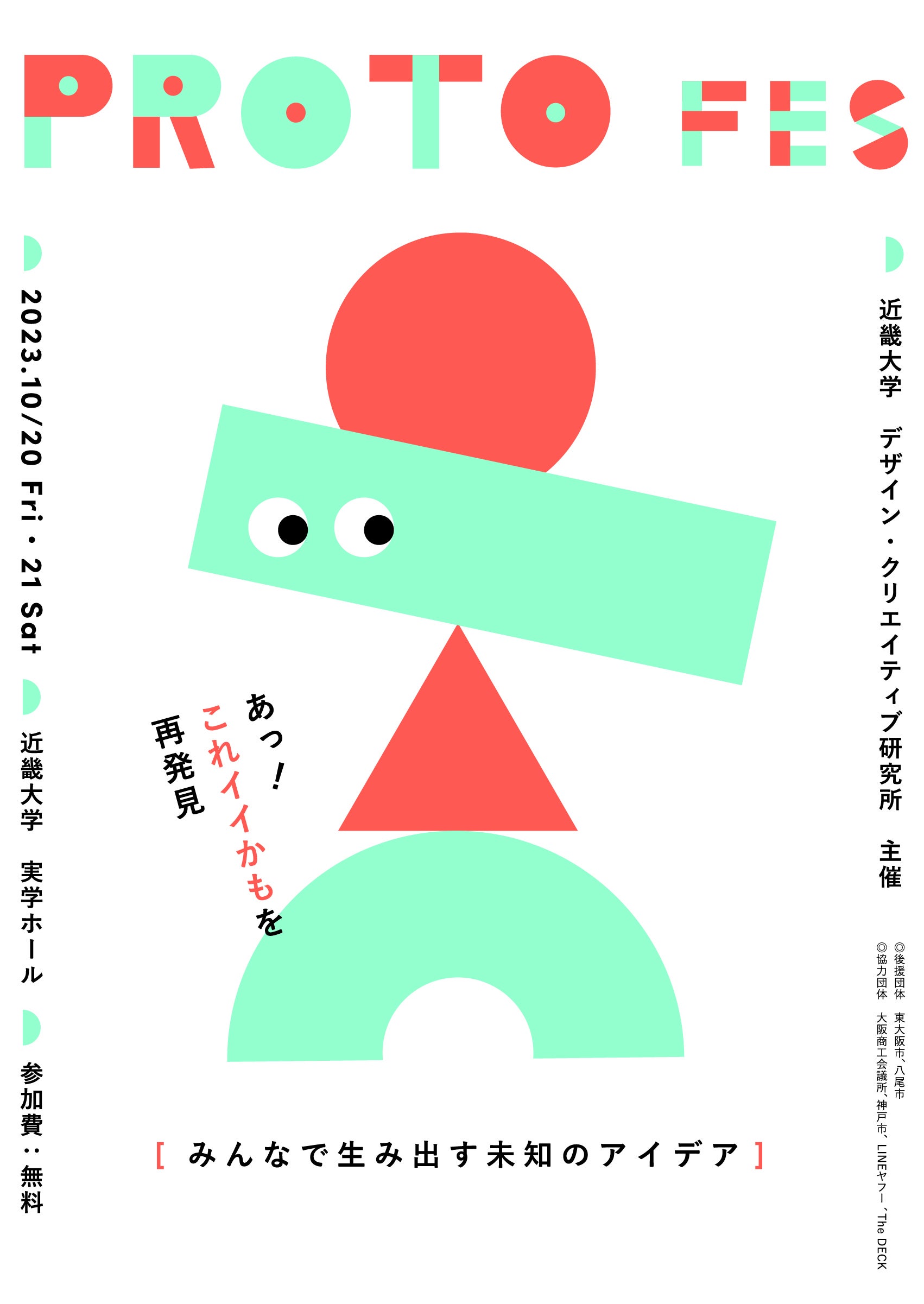 プロト・フェスは、近畿大学デザイン・クリエイティブ研究所が企画・運営する、多様な人々がアイデアのプロトタイプ(フィジカル・プロトタイプ、ビデオプロトタイプ、プログラミングなど)を持ち寄る場です。