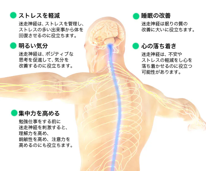 迷走神経が刺激されると、副交感神経系が活性化され、体が自然な状態に戻ることができます。