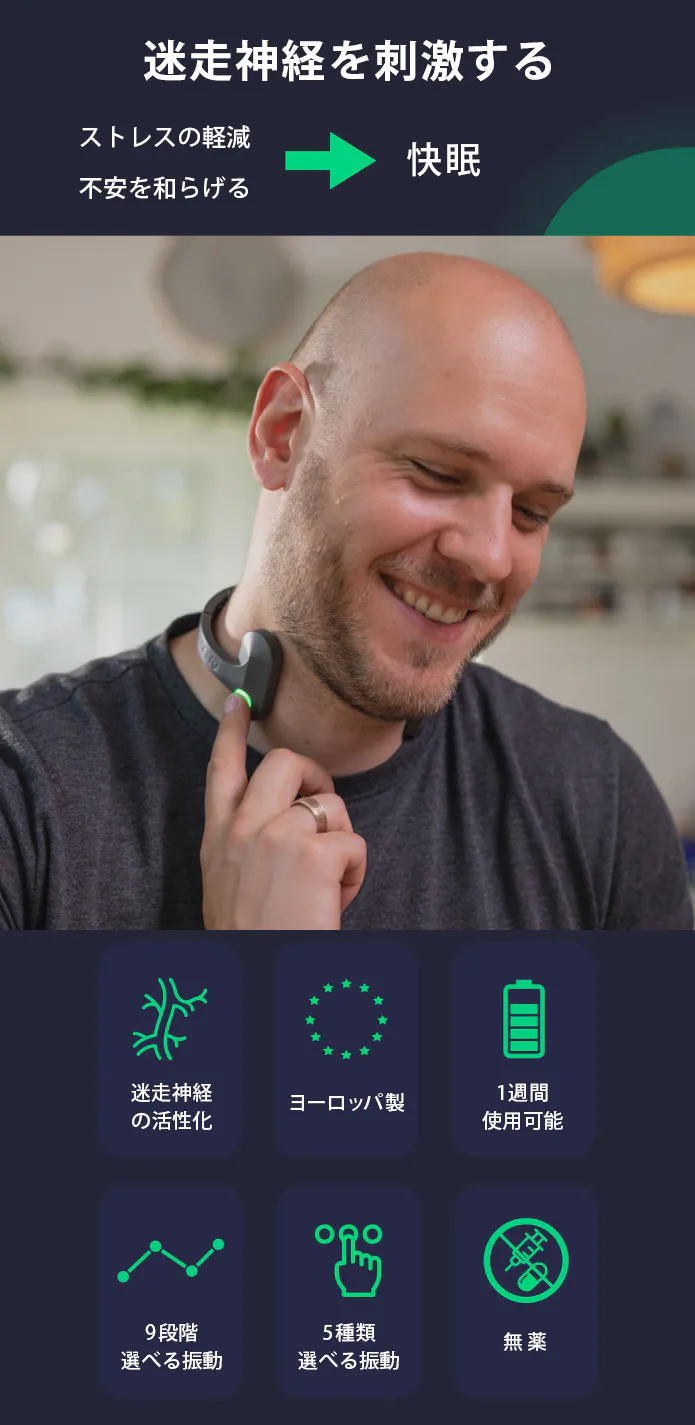 副交感神経系をバイオハックして、ストレスや不安のレベルを管理して均一化し、いつでもどこでも快適な睡眠へと導いてくれてます。