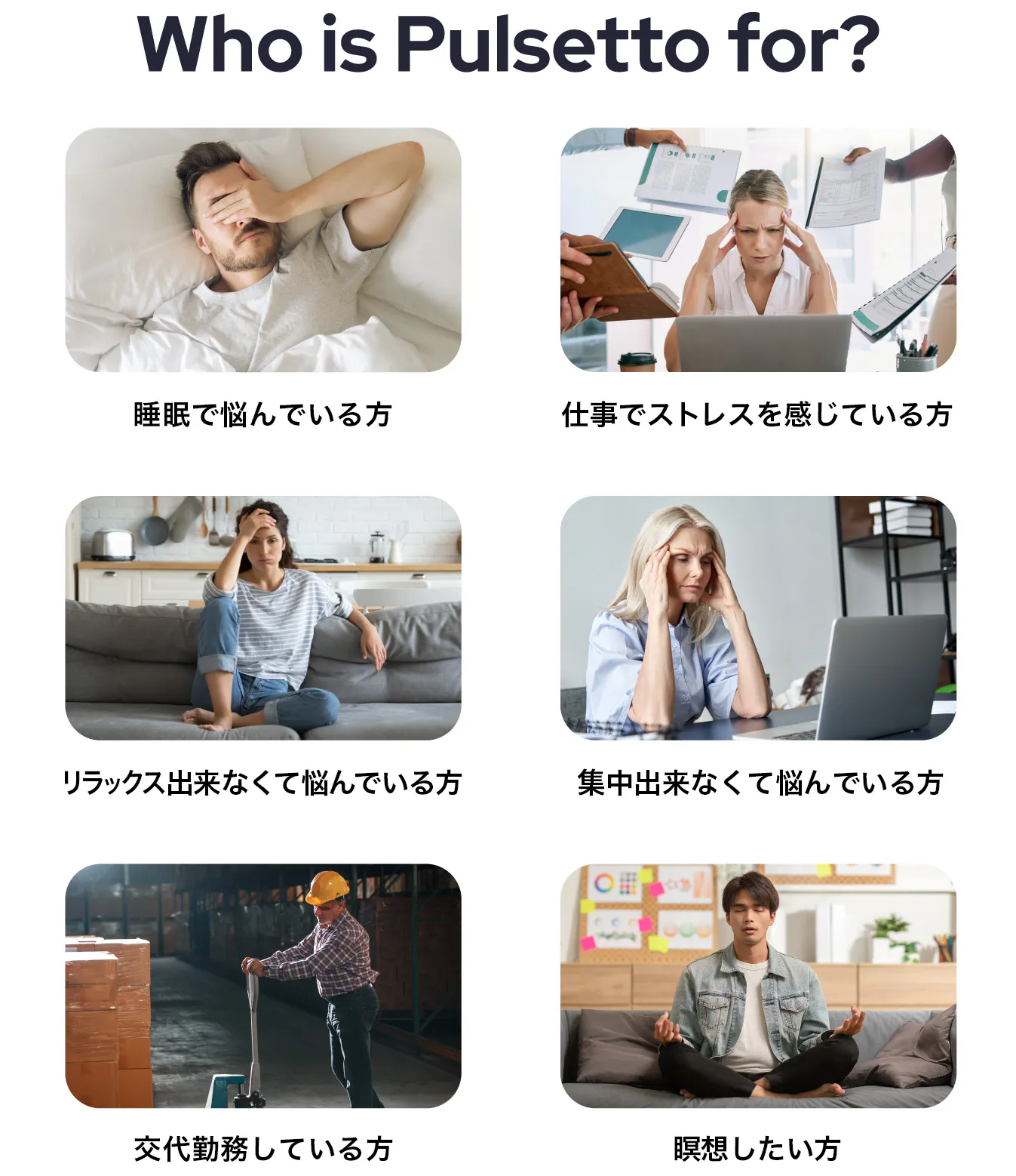 Pulsettoは睡眠で悩んでいる方以外にも下記の様な事で悩んでいる方にもおすすめです。