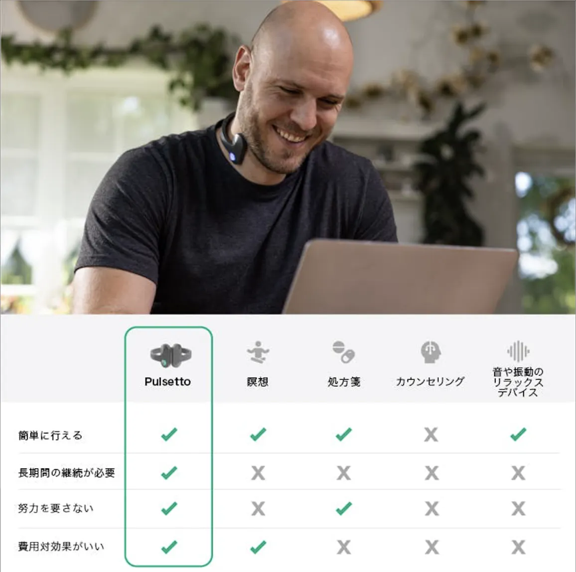 Pulsettoはいつでもどこでもストレスや不安のレベルを管理して、睡眠を改善するのに役立ちます。
