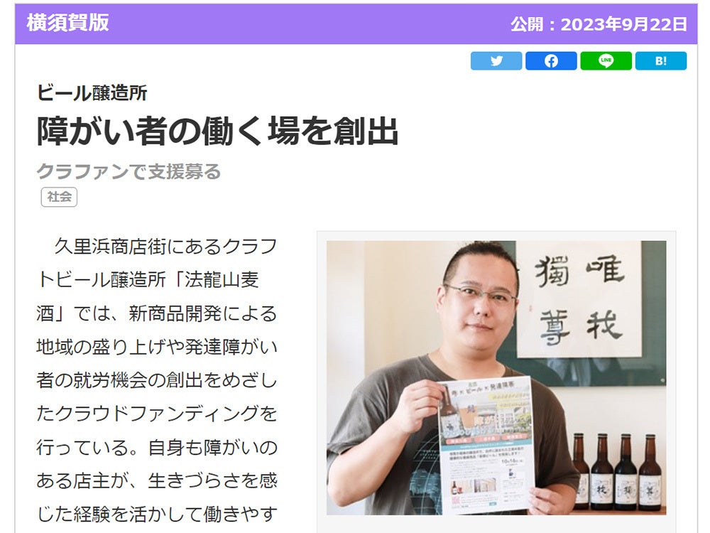 [タウンニュース横須賀版]ビール醸造所 障がい者の働く場を創出 クラファンで支援募る