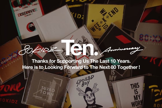 この世界を気づけば10年。様々な出会い、世界中色々な所でライブ、DJ等、やらせていただき、オリジナルアルバムを5枚発売し、リミックスやプロデュース等、様々な形で80KIDZを表現してきました。