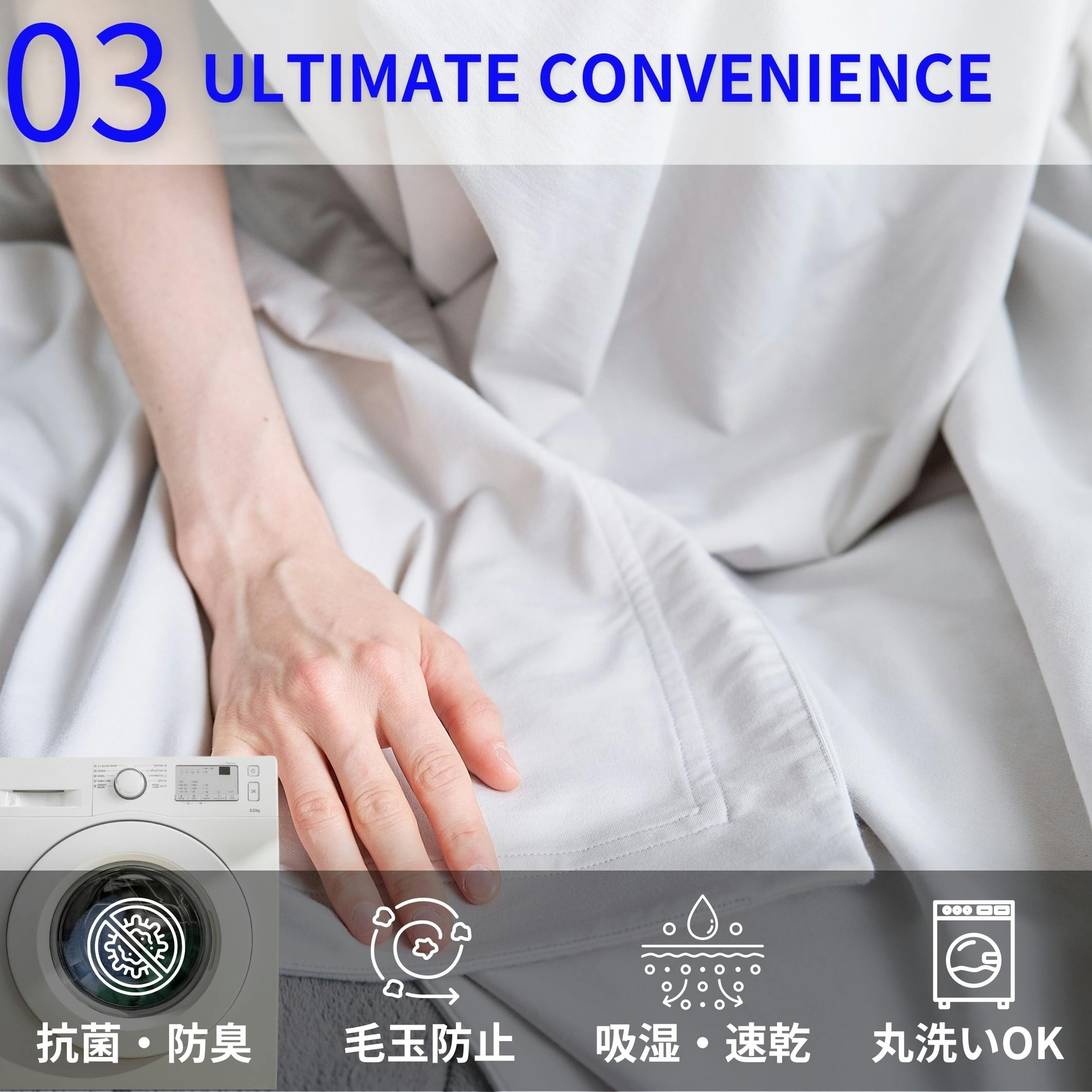 「INFINITY COOL BLANKET」は、家庭用洗濯機で簡単に丸洗い可能。毛玉も気にならず、毎日使う布団だからこそ、自宅で頻繁に洗って清潔&経済的に保てます。優れた通気性と速乾性があり、使い続けても汚れにくく、肌に優しい抗菌機能も魅力的なポイントです。