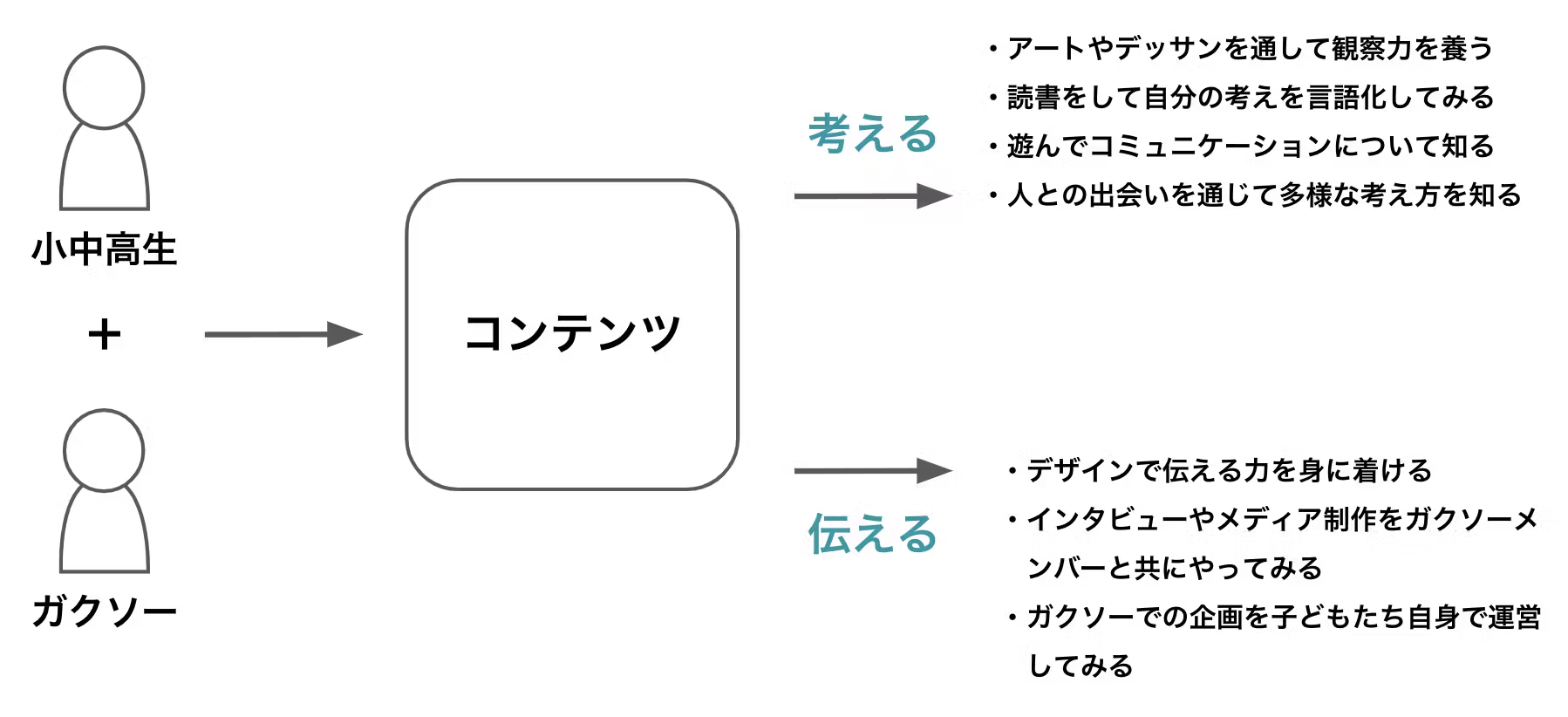 主な内容は、ガクソーに出入りしている大人・子供の表現物です。