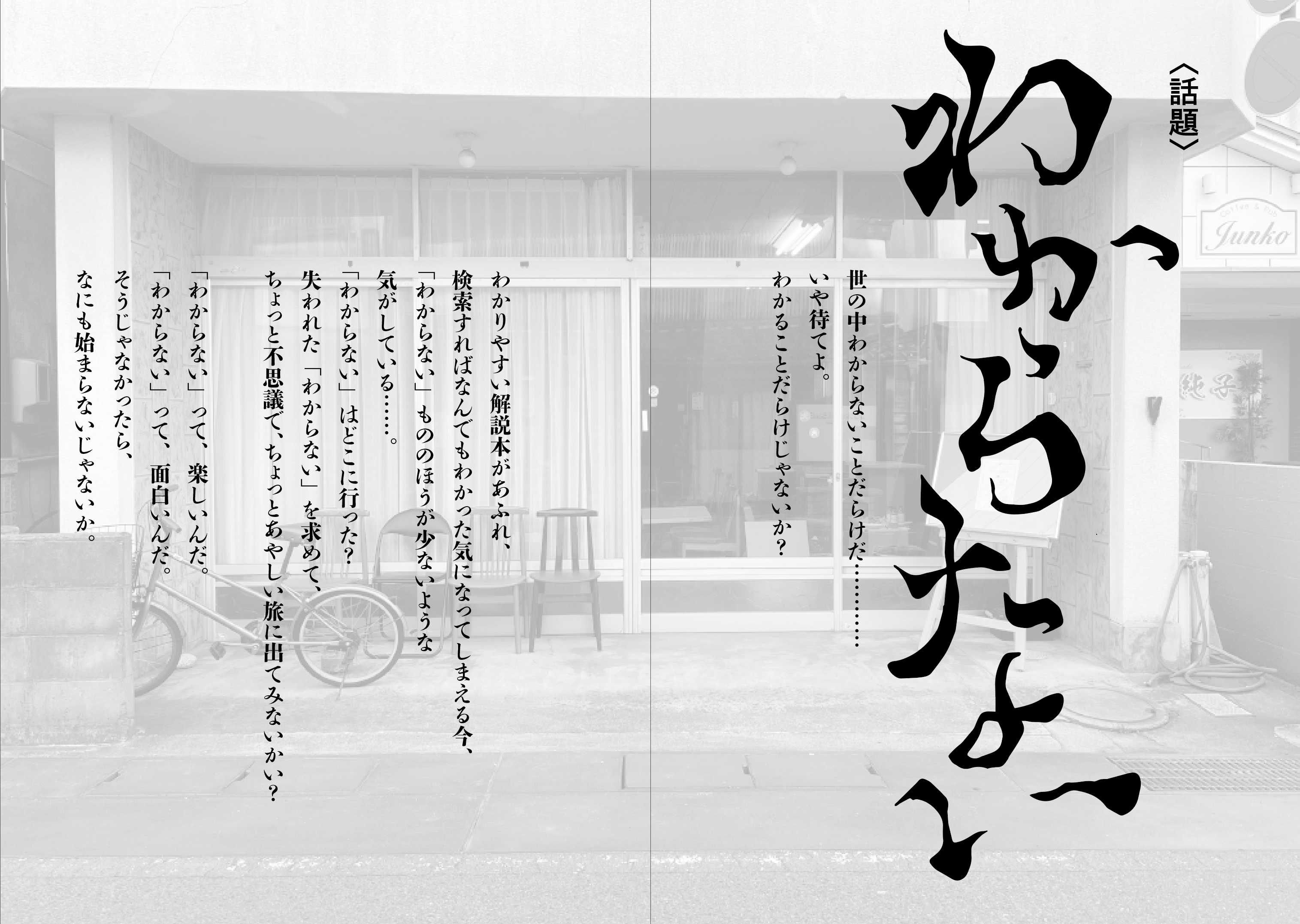 …なにげなく歩いているいつもの景色は「わからない」ものだらけだった。