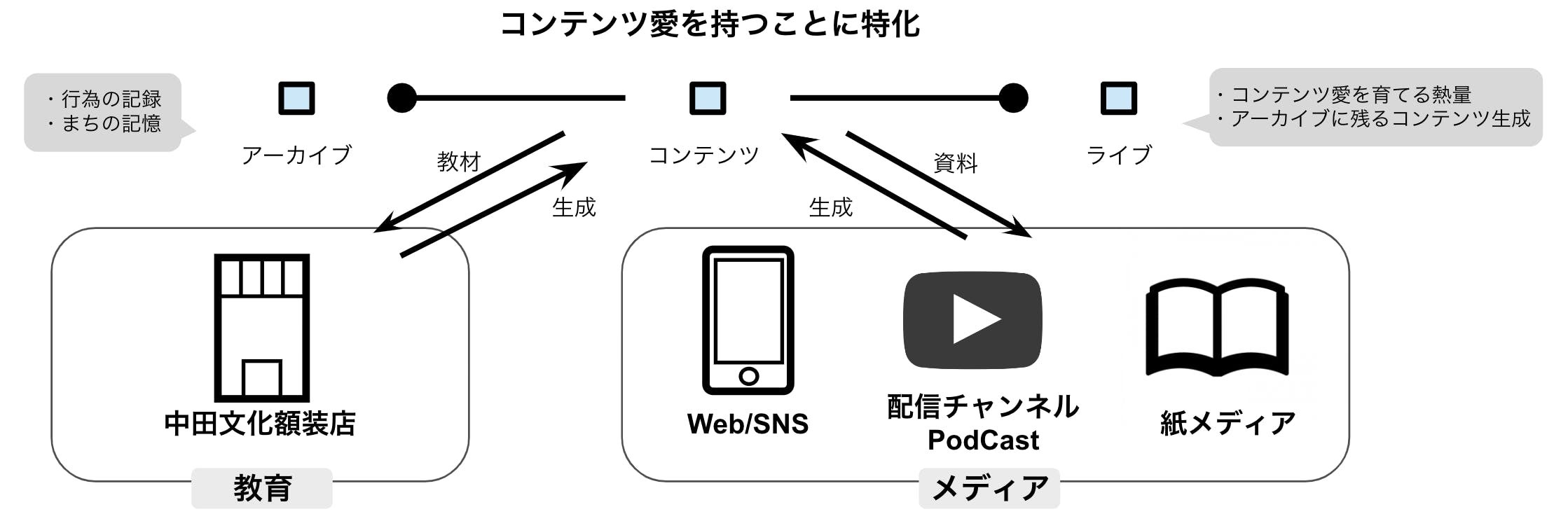 その根底には”コンテンツ”を愛すること、いわば”コンテンツ愛”を大切にすることがあります。コンテンツをつくり、アーカイブすることを通じてさらに思索を深めていく。そんな循環を生み出していこうとしています。