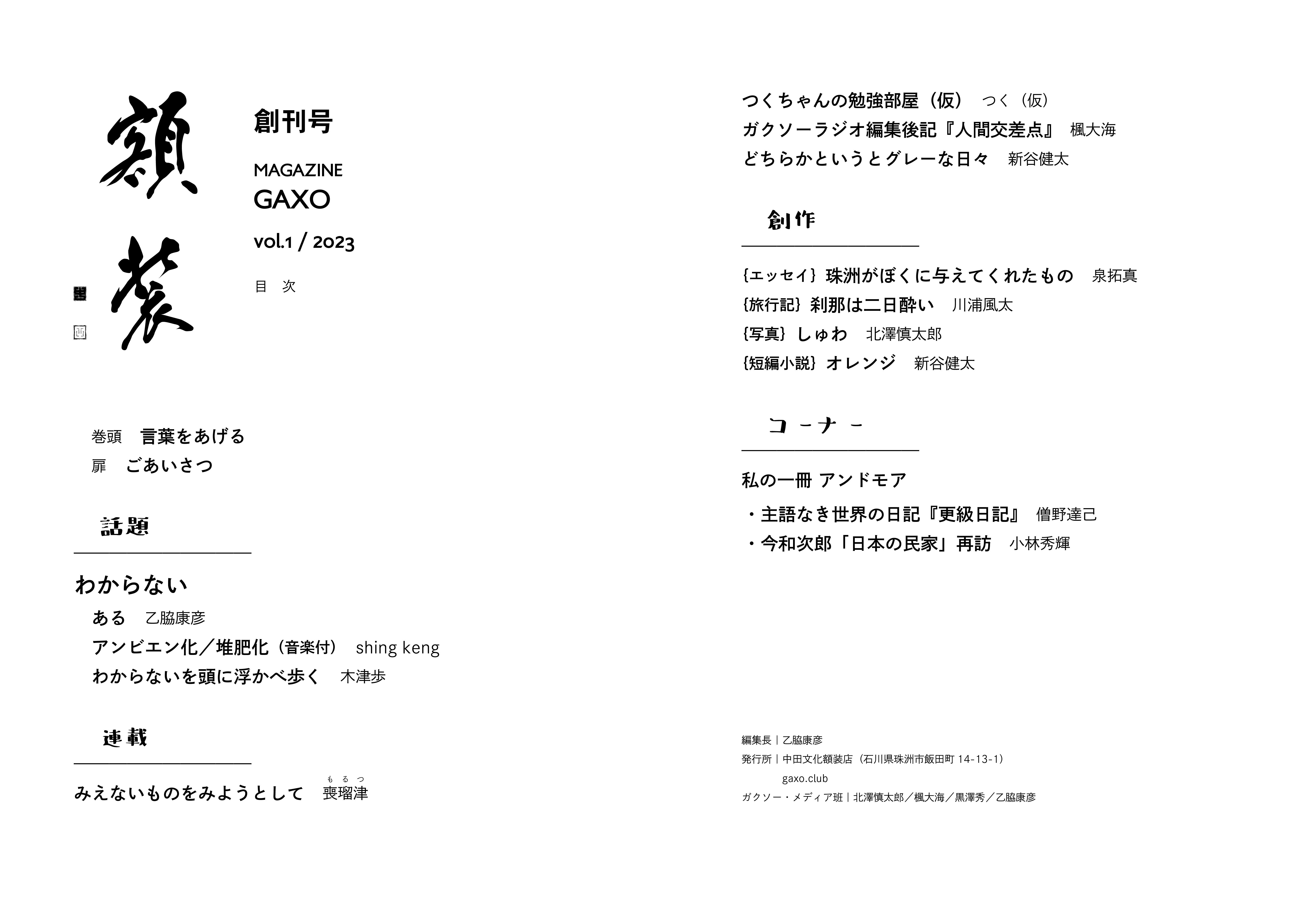 内容自体が読んで楽しい、知的で面白いだけでなく、雑誌の存在がガクソーの空間をもっと面白くすると思っています。さらなる成長のため、どうぞご支援のほどよろしくお願いいたします。
