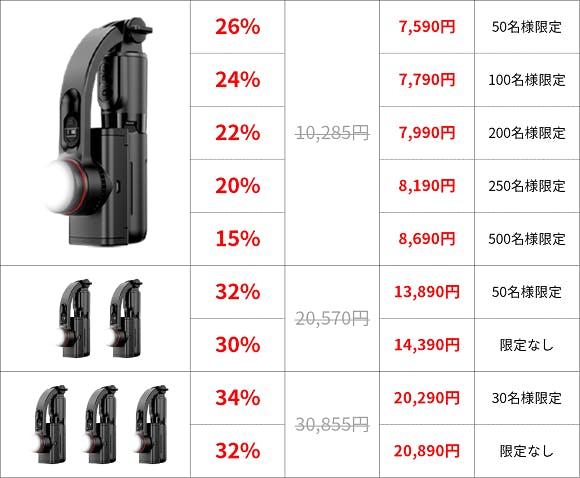 2023/06/28 12:36ページをご覧いただいている皆様、こんにちは!スマホジンバル「TOKQI-L18s」プロジェクトスタート!プロジェクトページをご覧いただき、誠にありがとうございます。「TOKQI(トッキー)-L18s」の特徴・「POVショット」「回転撮影」など様々なモードで撮影可能!・オリジナルアプリと接続して撮影するだけでプロレベルの撮影が可能!・アルミニウム合金素材採用!バックライト&リモコン付き・小型で超軽量!わずか210g商品についてご質問、ご不明な点がございましたら、お気軽にご連絡ください。目標達成に向けて頑張りますので、どうぞよろしくお願いいたします! 株式会社アースリボーン もっと見る