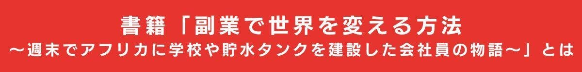 ●「副業で世界を変える方法〜週末でアフリカに学校や貯水タンクを建設した会社員の物語〜」電子書籍+書籍+個人スポンサー(書籍にお名前掲載):5000円