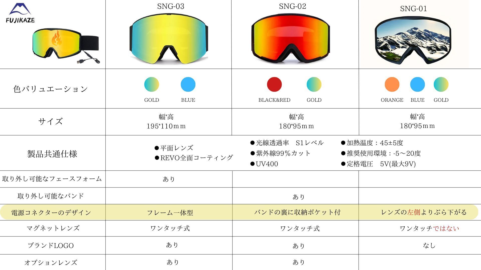 この思いを実現するために最初はゴーグルの自作から開始しました。約2年間の研究開発とテストを経って、この冬ついにFUJIKAZE電熱ゴーグルシリーズが誕生に近づきました。2023年末、完成形モデルのSNG-02及びSNG-03が発売する予定です(2022年発売のSNG-01は廃盤予定)。