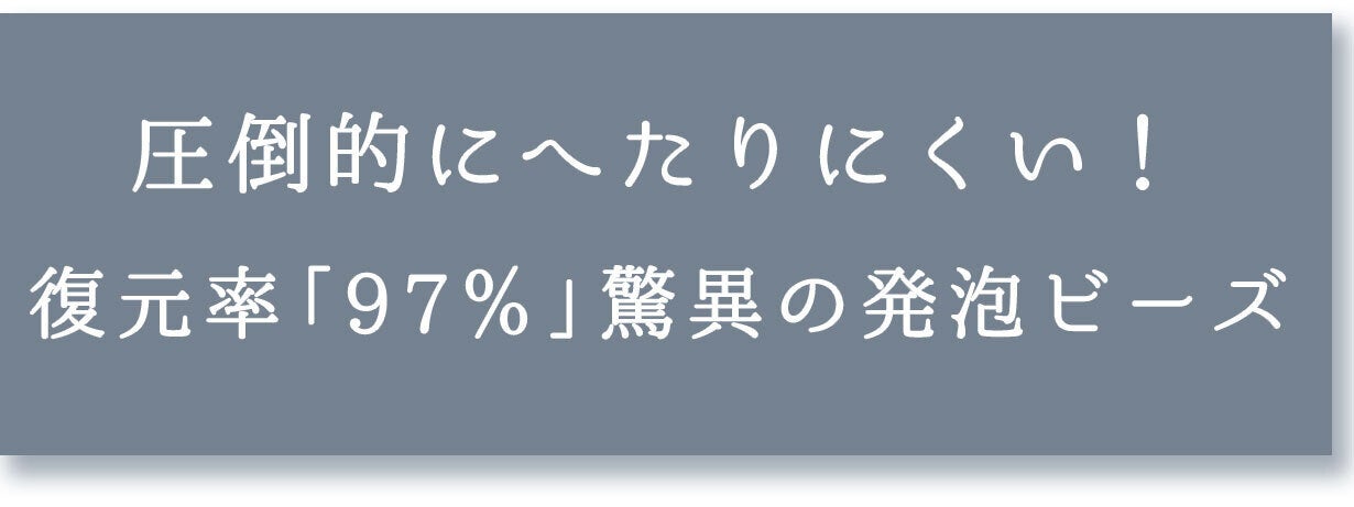 日本で製造した特殊発泡ビーズを使用。復元率97%と格段にへたりにくい!