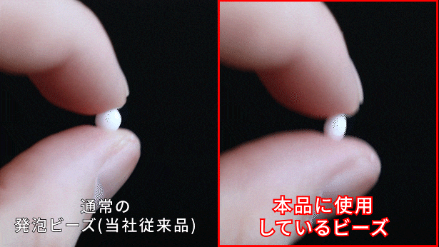 せっかく応援していただく皆さまにそんな悲しい思いはさせたくない!そんな気持ちから、特殊発泡ビーズを新たに採用しました。