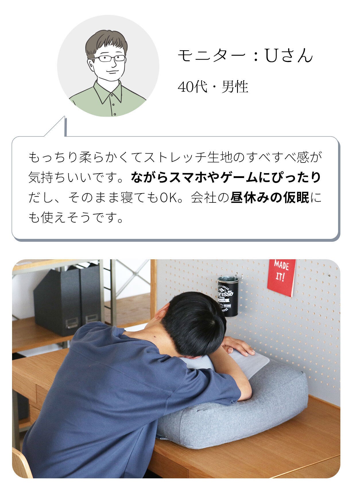 今回のビーズは通常のものよりも柔らかいということもあり、優しく包まれるような感触に仕上がりました。荷重を分散してくれるので、長時間使っていても違和感なく使えるのではないかなと思います。