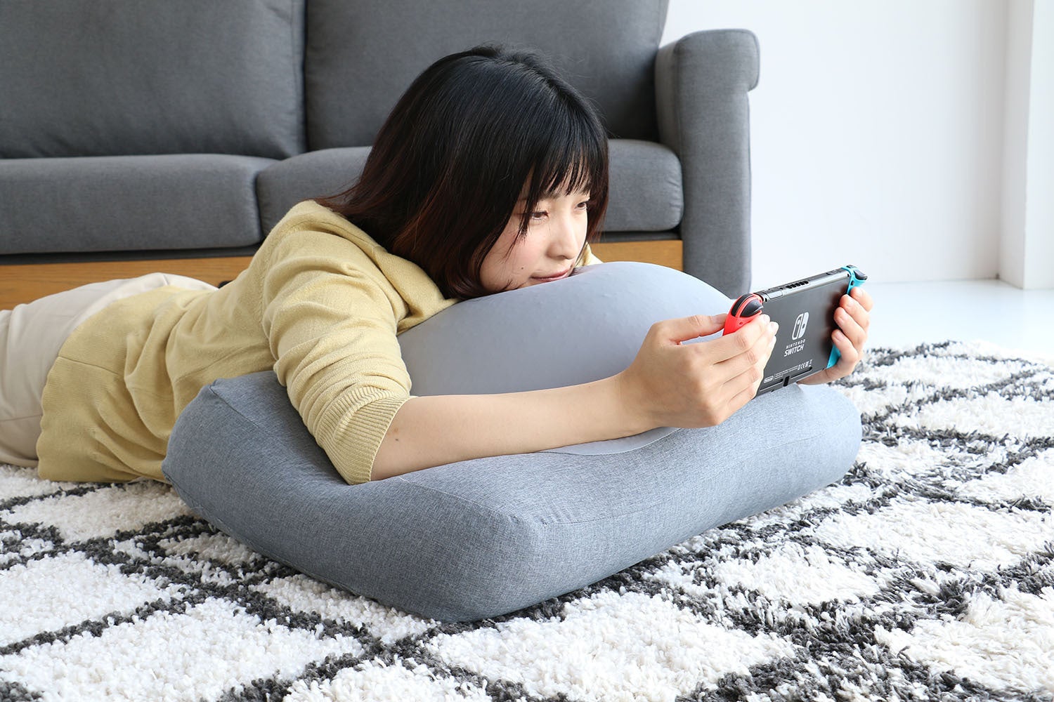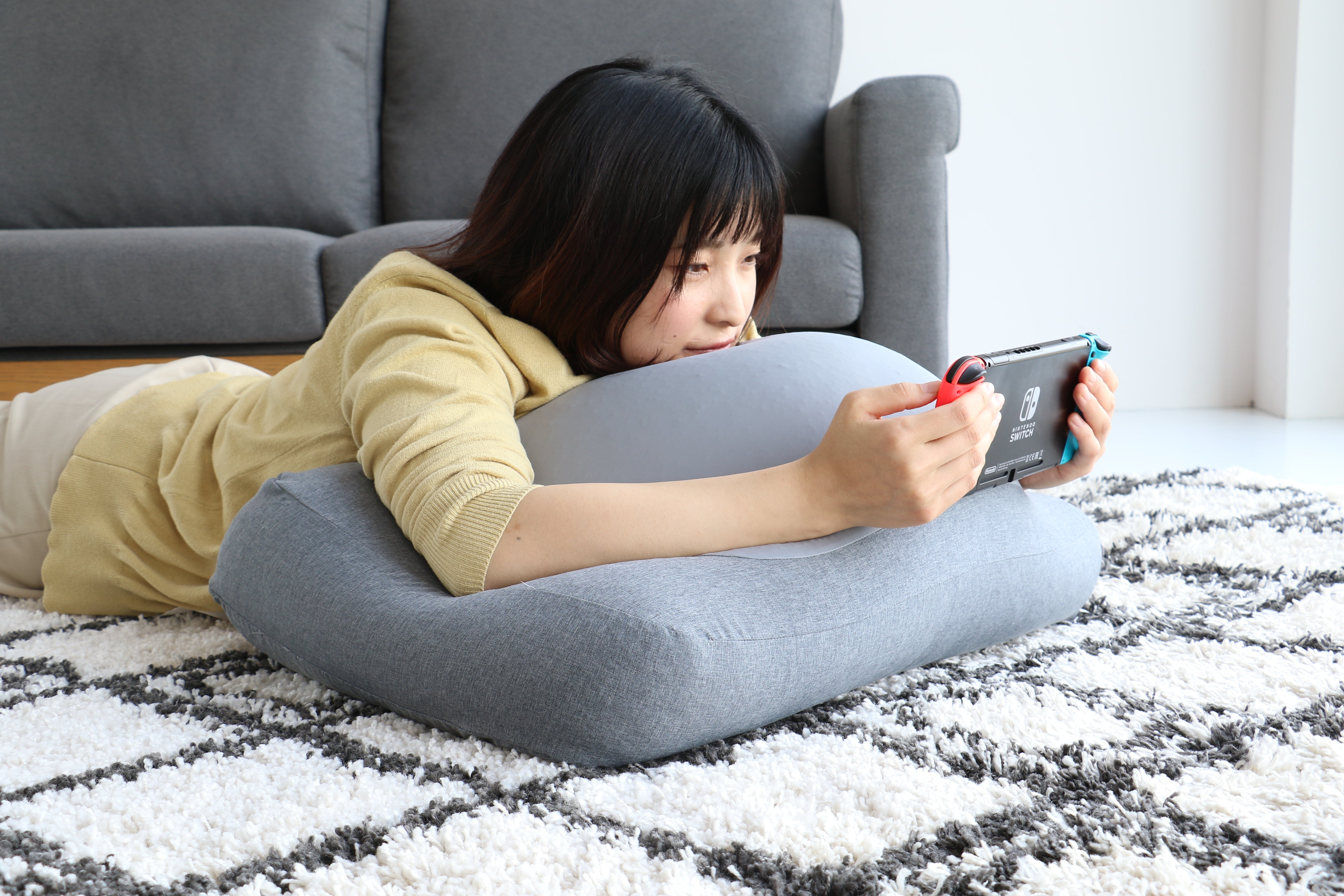寝転んだ姿勢でゲームできちゃうなんて最高ですよね。絶妙なサイズ感だから、床に肘が当たらずリラックスした姿勢を維持できます。そのまま寝落ちしてもOK!