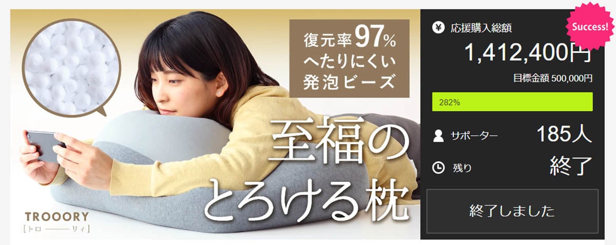 2024/07/01 10:00こんにちは、市場株式会社です!至福のとろけまくらTROOORYプロジェクトは昨日(6/30)終了し、目標金額の657%を達成いたしました!ご支援いただいたみなさま、誠にありがとうございます。商品発送に向けて準備を進めて参りますので、到着まで今しばらくお待ちいただければと思います♪ もっと見る[目標達成率500%越え!]TROOORYプロジェクト残り10日!