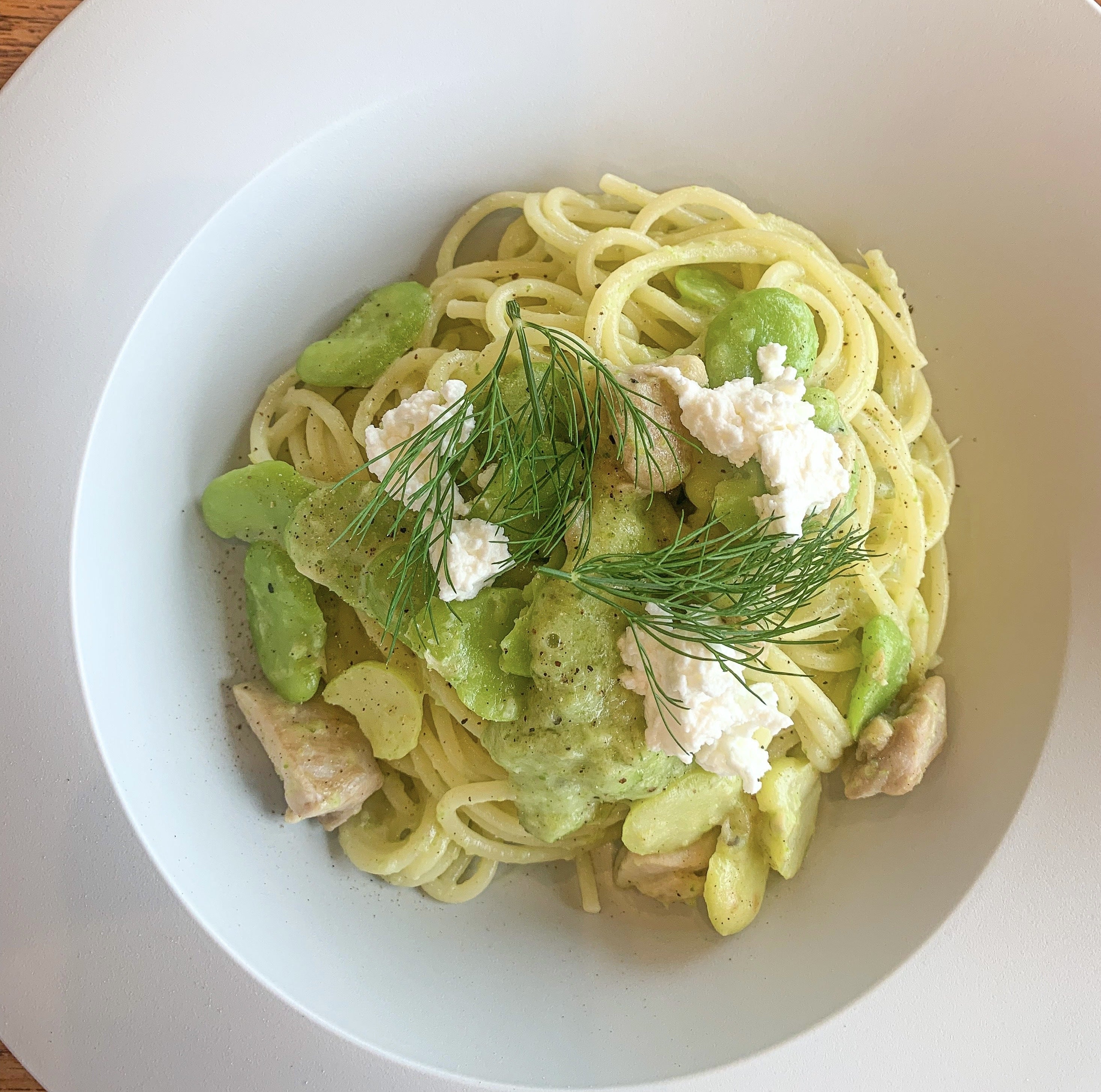 「そら豆とカッテージチーズのパスタ」を