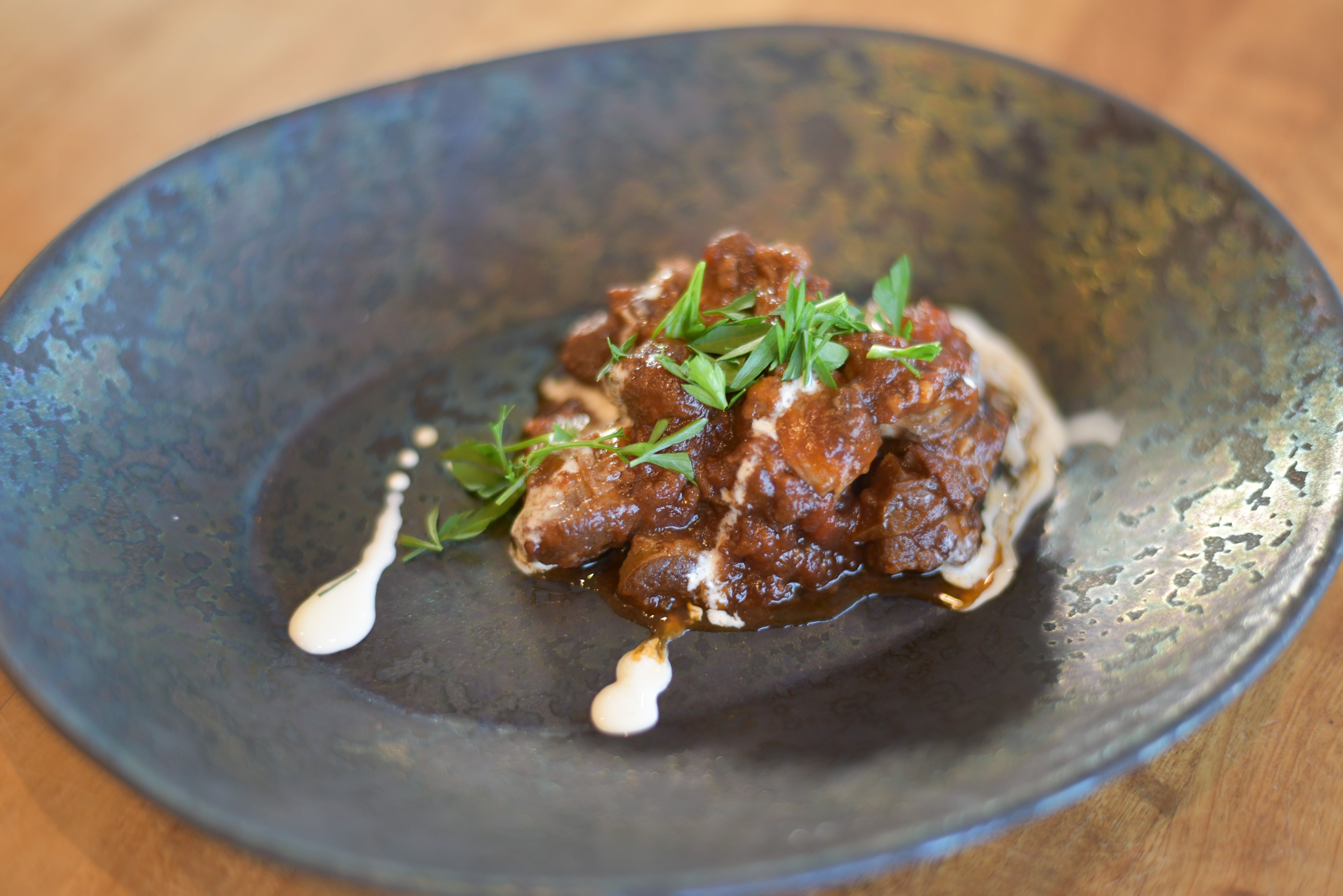 農薬を使わず、自然の中に種をまき季節と共に野菜を育てていく自然農法で店の横の畑で育てたハーブや市場に流通しにくい日本各地の個性的な野菜たち、近隣の直売所からの新鮮な季節の野菜たちをメインに魚市場で習得した「津本式」を使った熟成魚、狩猟免許を取得して和歌山にて積み上げた猟師としての経験と繋がりを使った捕獲から血抜き、冷やし込みなど『食品』としての捕まえ方からこだわったジビエ料理など、ここだからこそ、僕だからこその料理を提供するよう日々精進しております。