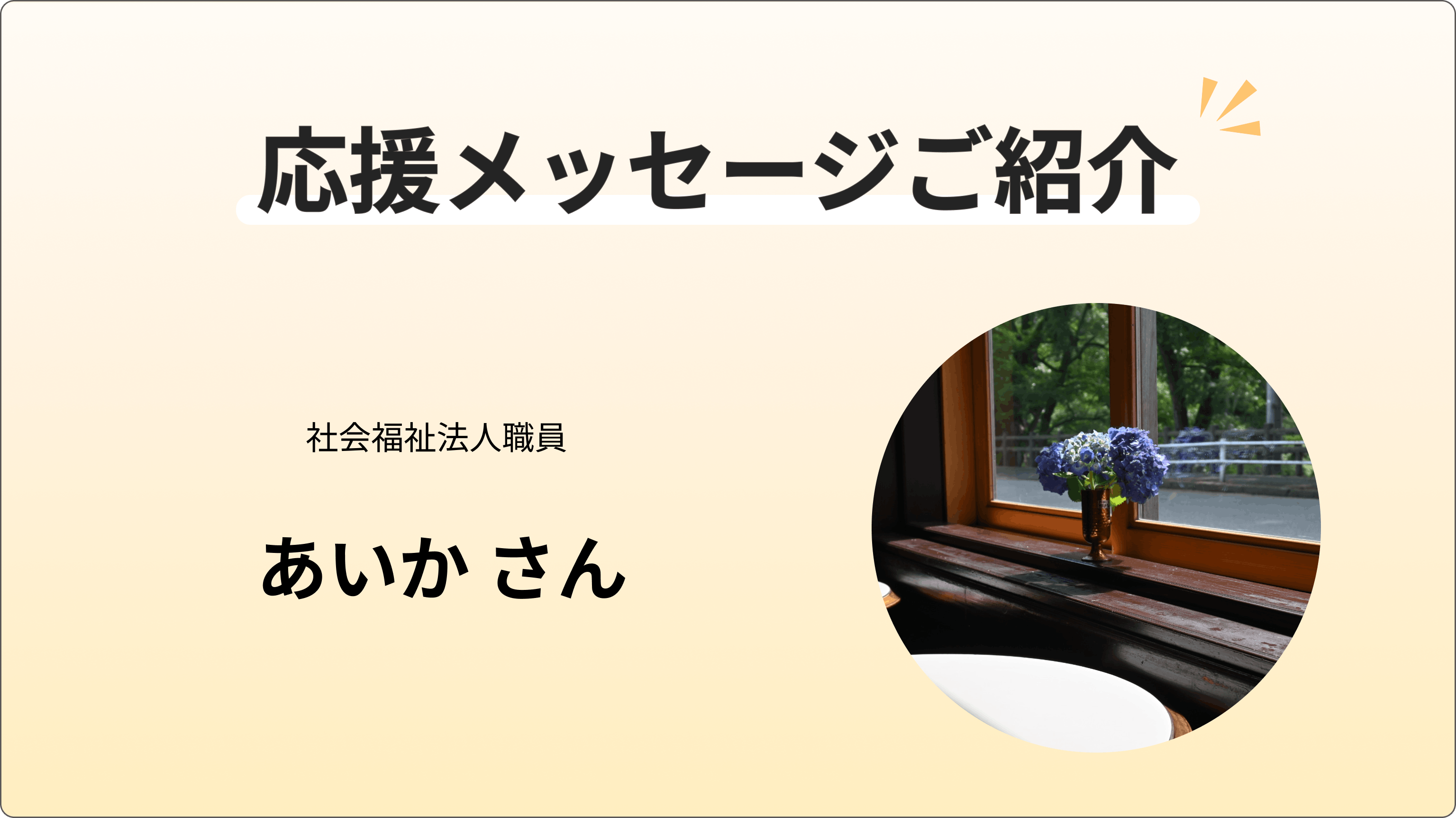 今回は社会福祉法人職員のあいかさんから応援メッセージをいただきました。