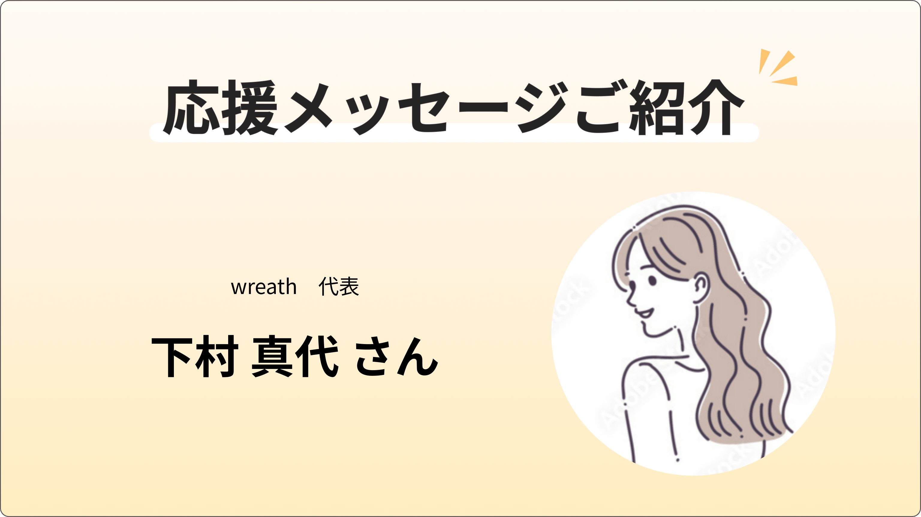 今回はwreath代表の下村真代さんから応援メッセージをいただきました。