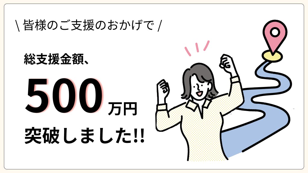 この度、多くの皆様にご支援いただき、支援総額500万円を突破しました!!