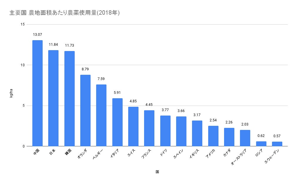 2018年時点で日本の農薬量は不名誉な2位となっています。