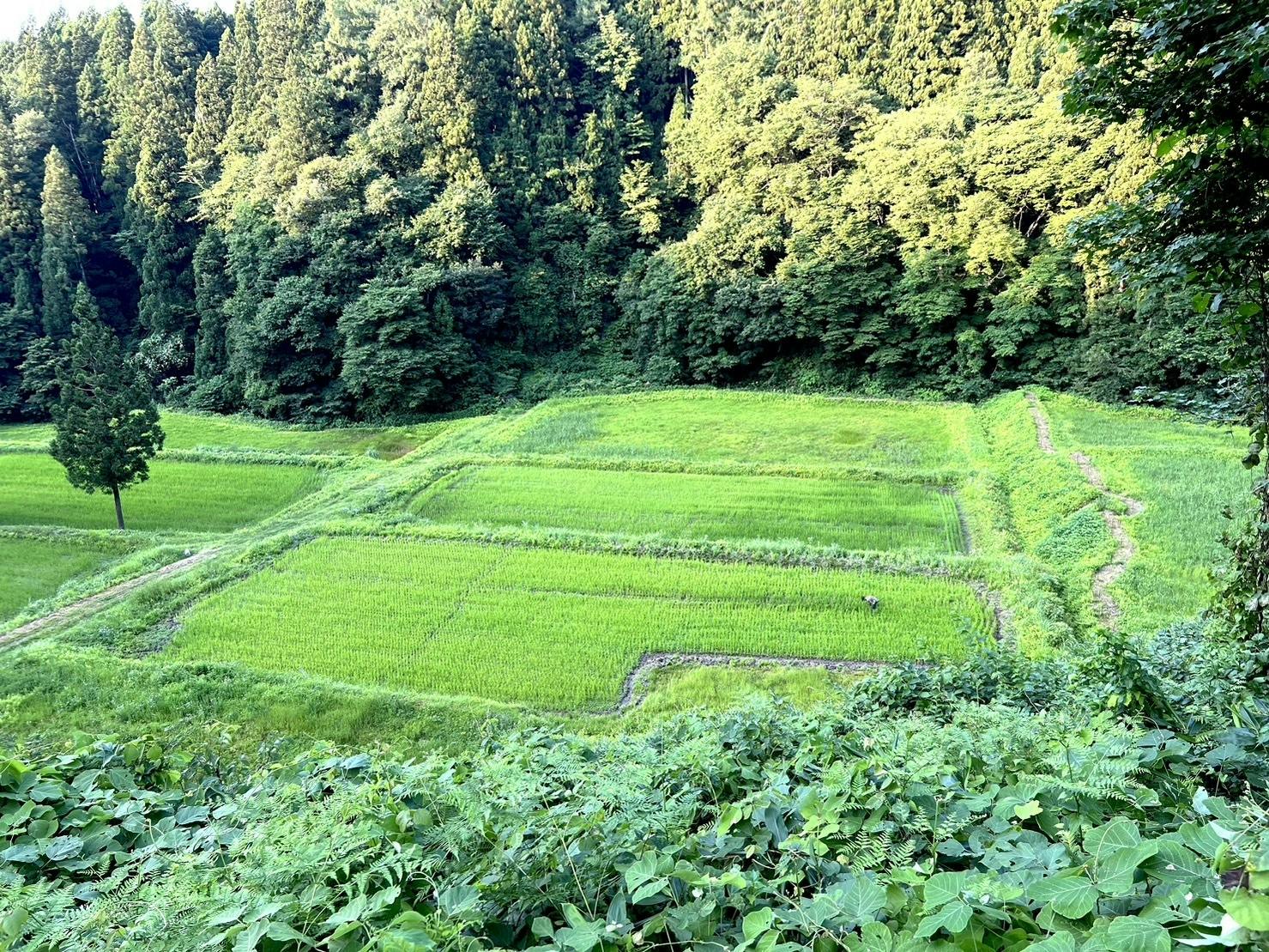通常ならば、田んぼ周囲の草刈りを済ませなければならない時期ですが、今年は田んぼの中の草抜き草取りで、畦草刈りは猛暑の8月仕事です。