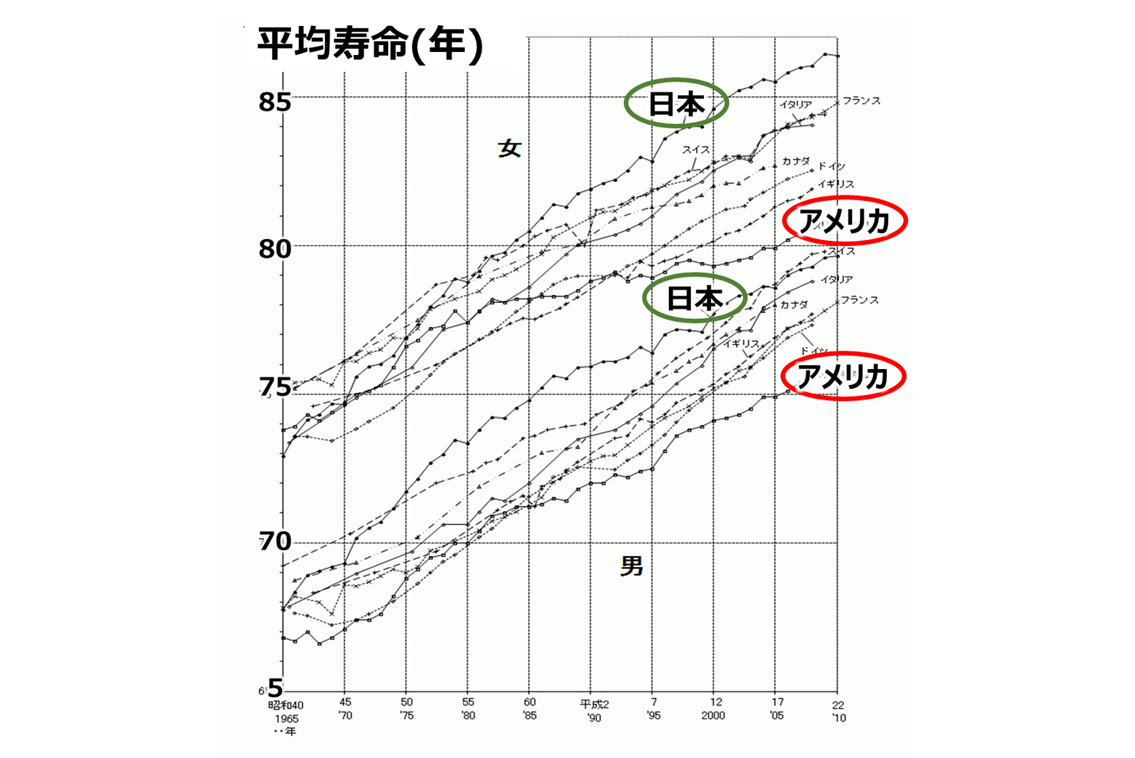 実際にアメリカ人は日本人よりも平均寿命が短く、