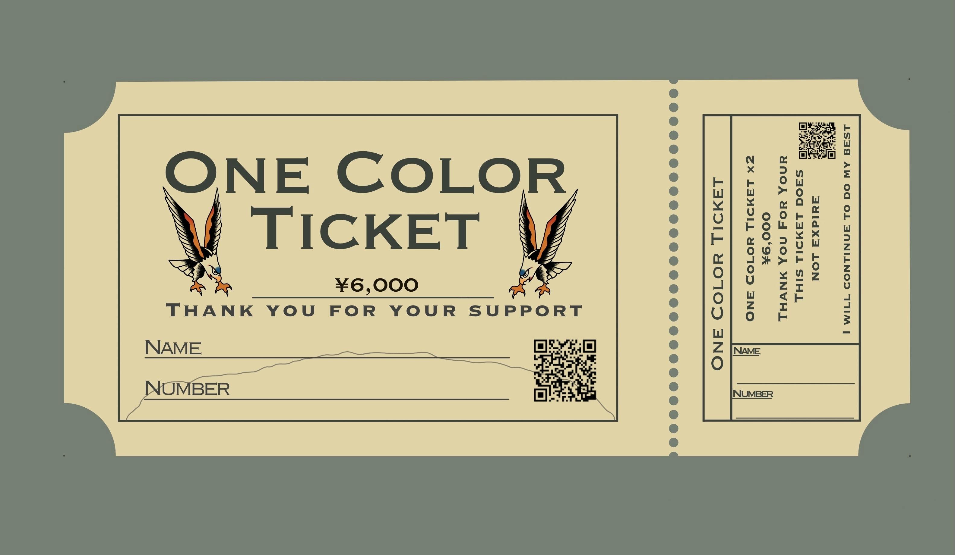 ワンカラーデザインチケット2枚とオリジナルステッカー3枚セットになります。それとお礼のメールを送らせていただきます。 ワンカラーデザインチケットは単色でのシンプルなデザインのものを描かせていただきます。あなただけに描くオリジナルデザインになります。支援後SNSでのやり取りをさせていただきます。お渡しはJPEGになります。 オリジナルステッカーは55×91㎜程の名刺サイズのものが3枚セットになります。※ステッカー素材は接着面側からセパレーター・糊・印刷フィルム・UVラミネートされた耐水性のあるものになります。 チケットには支援者の方の名前入りの画像でのお渡しになります。※必ず備考欄に希望のお名前をご記入ください。