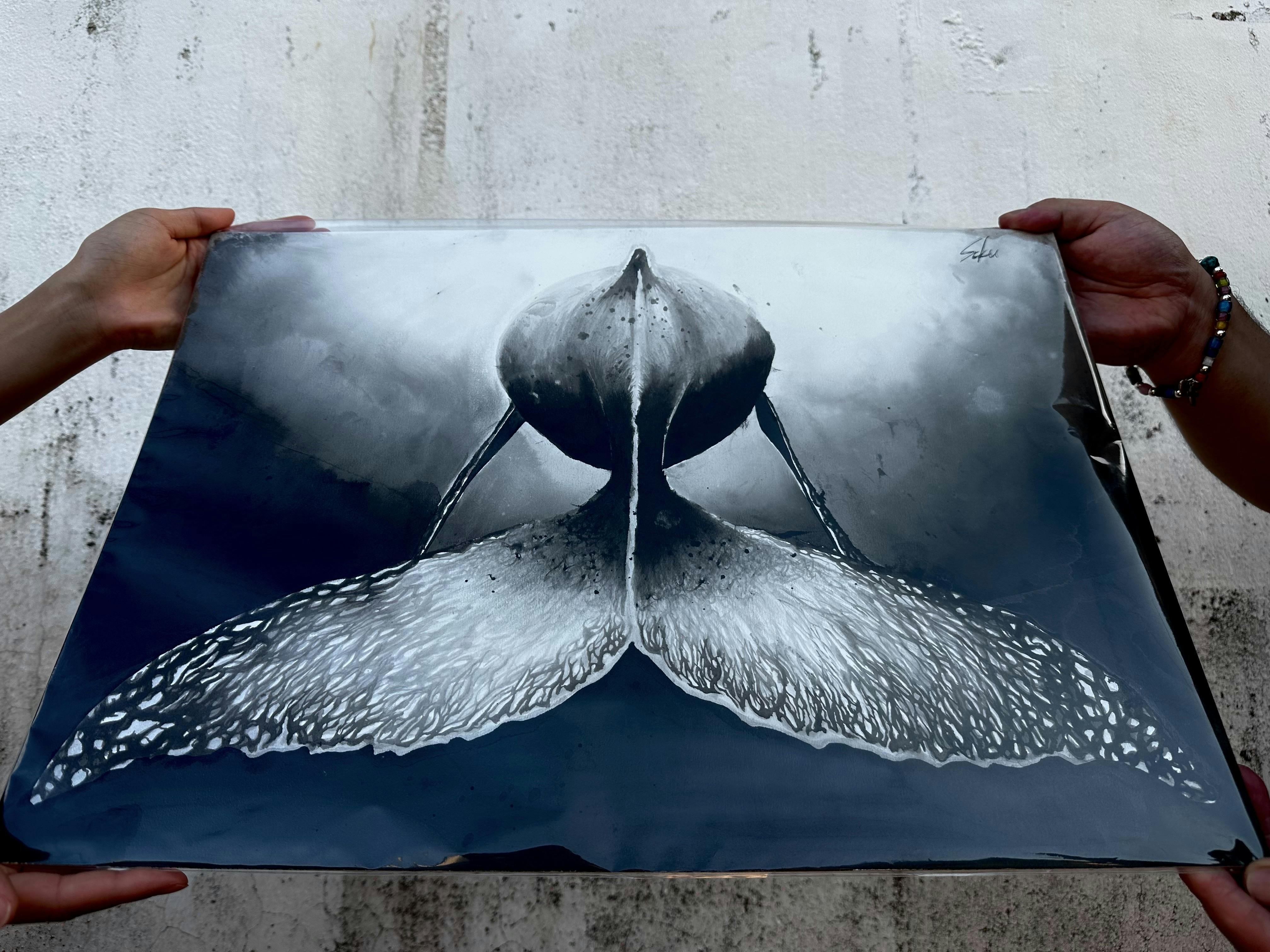 2023/08/09 17:35こんにちは!sakuです。この度、【クジラ】を描いてほしいと依頼を受けていた絵が完成しお渡しできました!A2の水彩紙に水墨画で尻尾として描かせていただきました。描いていて楽しく、やっぱり描く、観察、考えることが好きだなと実感しました。今後とも名前を残せていけたらうれしいです。引き続きご支援よろしくお願いいたします! もっと見る